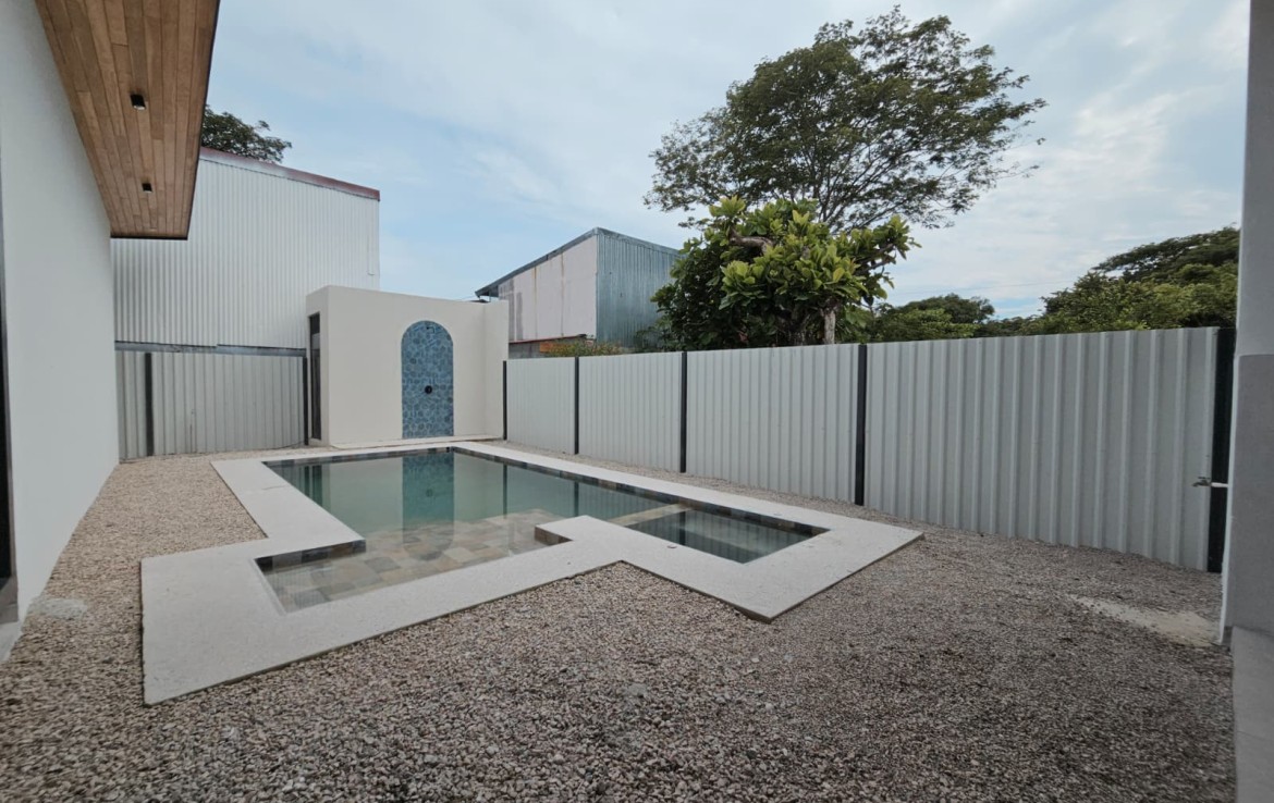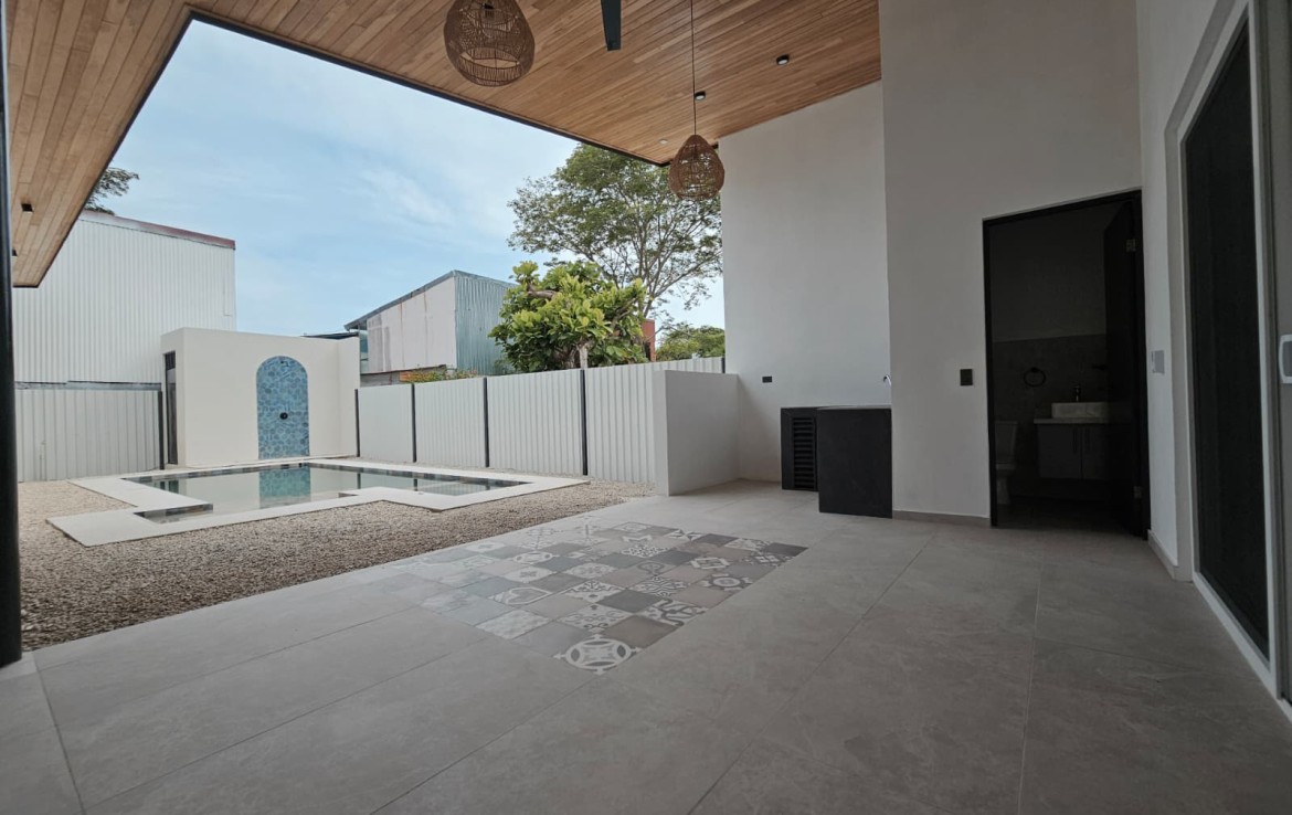 enjoy a big living-room, dining room & Kitchen in one open space with a generous Walk-In Pantry keeps you organized. Large windows fill the house with natural light. A well-designed terrace includes an oven and BBQ, ideal for cooking meals while enjoying the outdoors. tep inside to an open-concept floor plan featuring high ceilings, luxury finishes, and abundant natural light. A sparkling pool adds to the luxury. The pool is perfect for cooling off and lounging beside on sunny days. This amazing new construction home has a great location, situated in a peaceful neighborhood and only a 2-minute drive to Playa Samara. Don’t miss out on this unique opportunity to invest in prime real estate in a growing area. Remember, don’t miss this opportunity to own a brand-new home in one of Samara’s most sought-after locations!